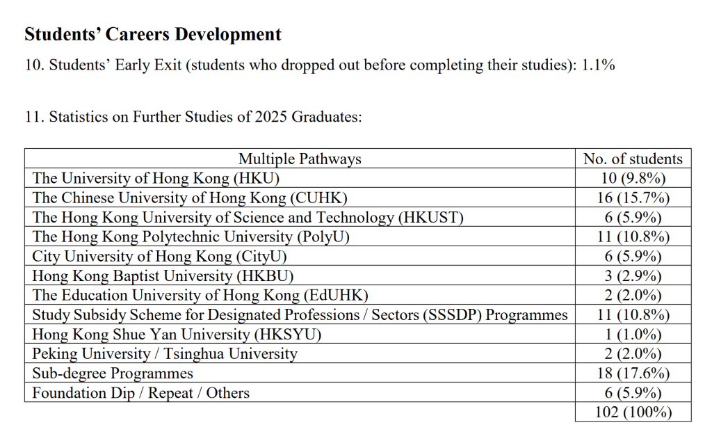 副学士学位课程 Associate Degree Program | 18 | 17.6% | 15 | 15.2% | - | - | - | 副学士/预科 |