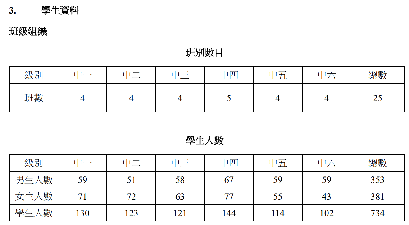 F.1, 2, 3, 4 & 5 students are required to take 2 examinations and 2 uniform tests during the year besides daily assessments. F.6 students are required to have daily assessments, 1 uniform test and take 1 examination.