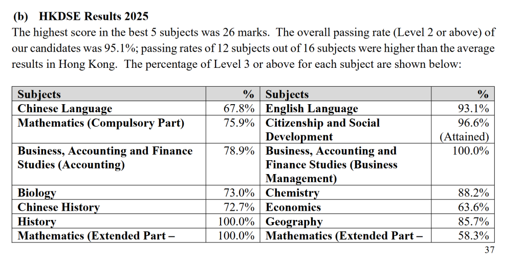 IB成绩位居香港前十,按DSE成绩属于Band1中学。