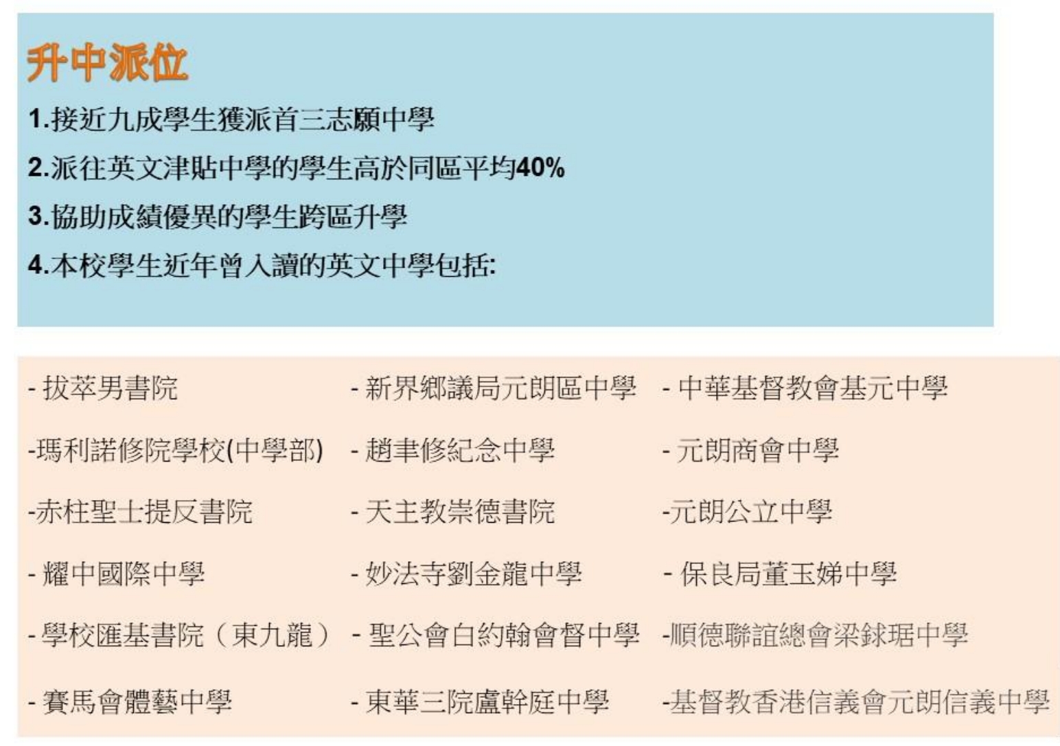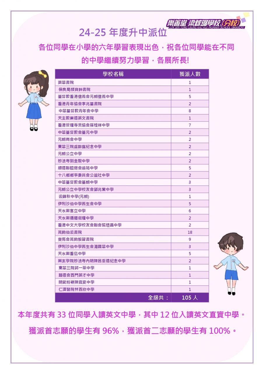 | 英華書院 YINGWA | 1 | 1% | - | - | - | - | 1A | 50 |