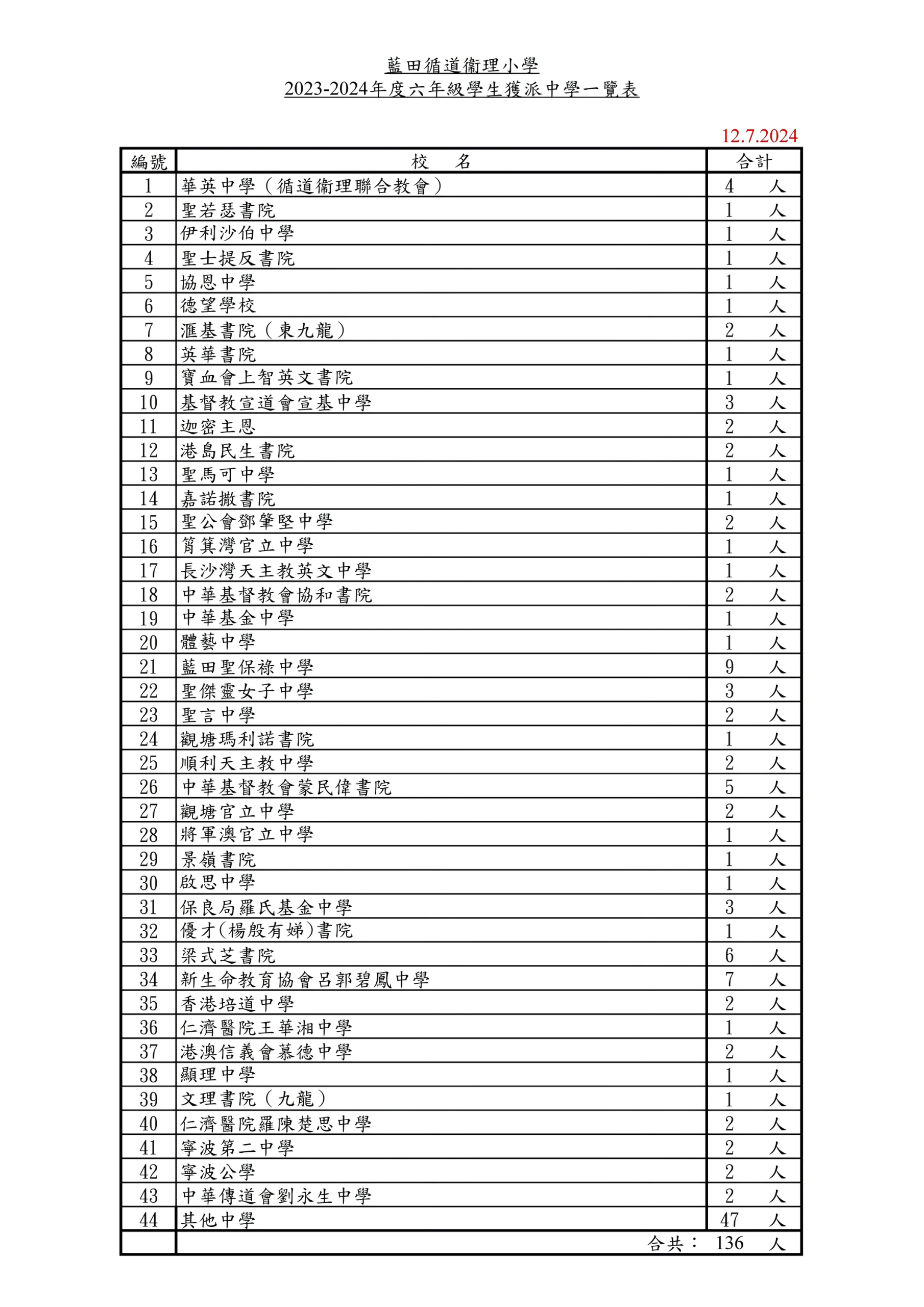 | 聖若瑟書院 SJC | - | - | 1 | 0.7% | - | - | 1A | 13 |