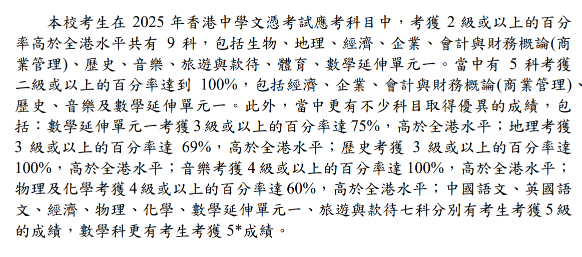 Based on the recommendations of the CDC, our broad and balanced curriculum including diverse and specialized subject choices, allowing students to develop academically, professionally and careers according to their abilities, interests and needs. Flexible and open structure of the curriculum can be adapted to the school situation so as to promote students' whole-person development and cultivate their life-long learning and self-directed learning ability. Dedicated teachers from different learning areas in the KLA group are responsible for monitoring the curriculum development direction and the subject contents. Some subjects can strengthen the connection between the junior high school curriculum and high school, and lay a good learning foundation for students; also provide high school curriculum trial arrangements for S3 students to meet their developmental needs ; the school's senior high school curriculum provides a diversified combination of subjects, students not only can choose to study Applied Learning subjects, and can take DSE Music, DSE PE and DSE Visual Arts, which is conducive to the diversified development of students.