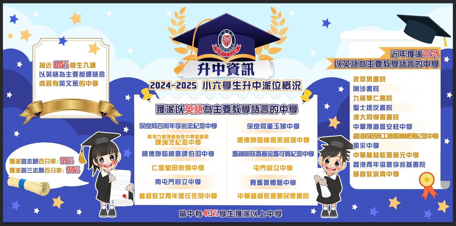 小二升小三及小四升小五按學生能力進行分班,籍此提供更適切的教學及輔導,以照顧學生在個人、群性成長發展及學習多樣性。