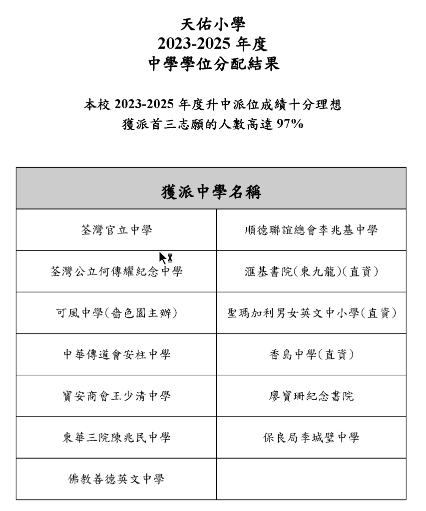 香港小学升中率排名(2025)