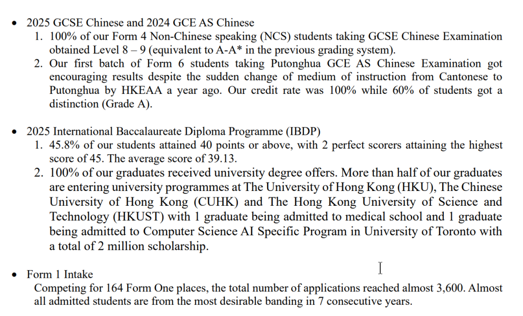 保良局颜宝铃书院往年IB成绩在香港名列前十,DSE成绩则位居Band1A。