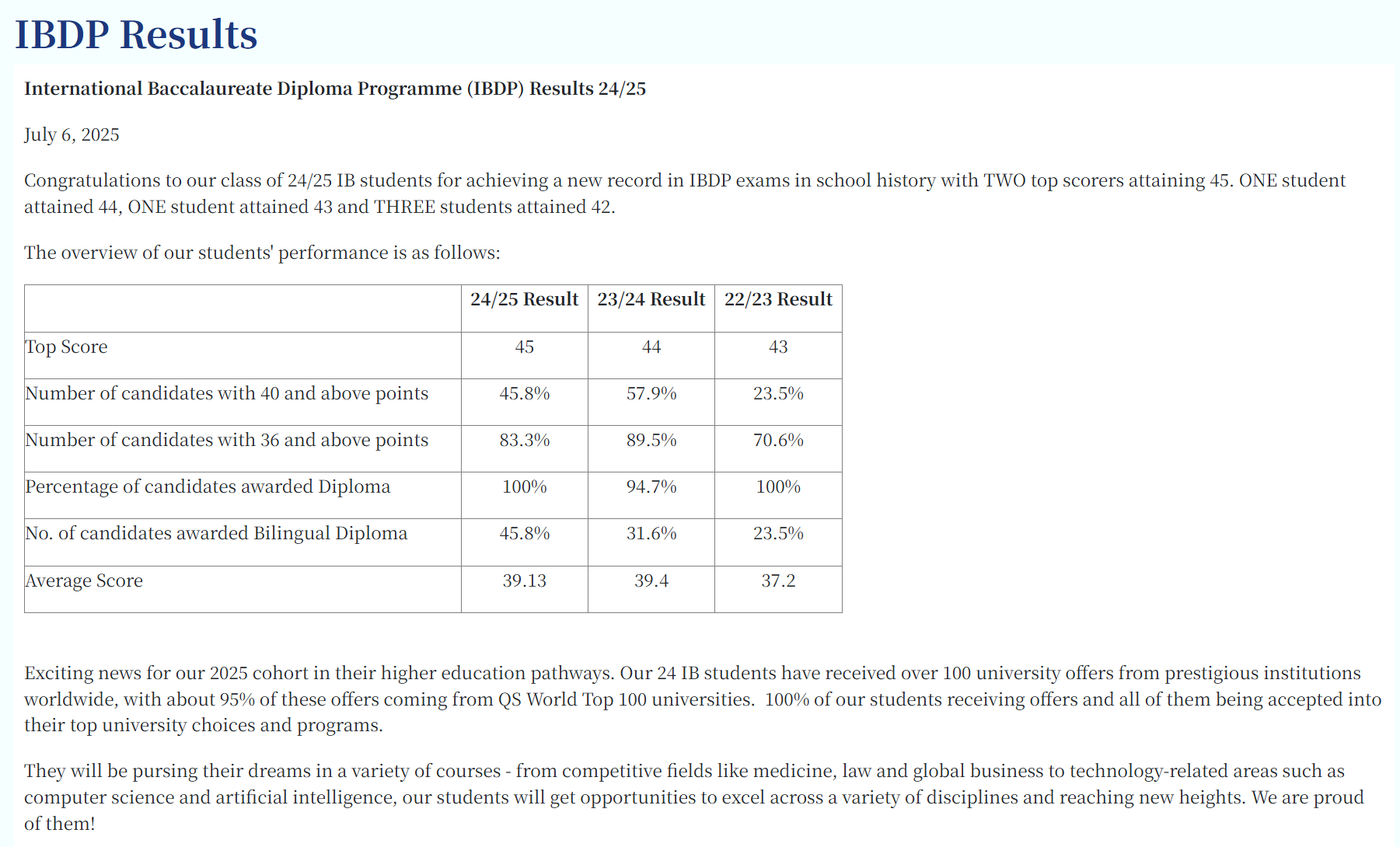 升学结果 | Placement