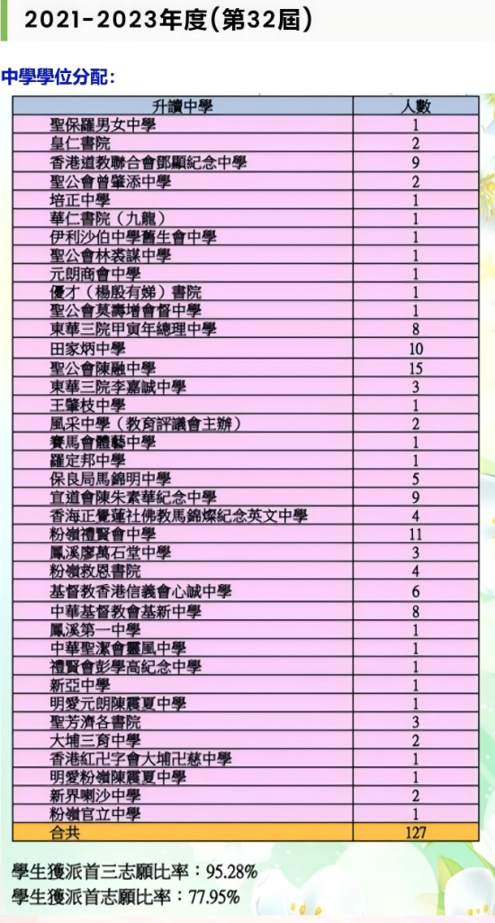 | 聖羅撒書院 | 1 | 1% | - | - | - | - | 1B | 97 | 女 | 沙田 | 英文 |