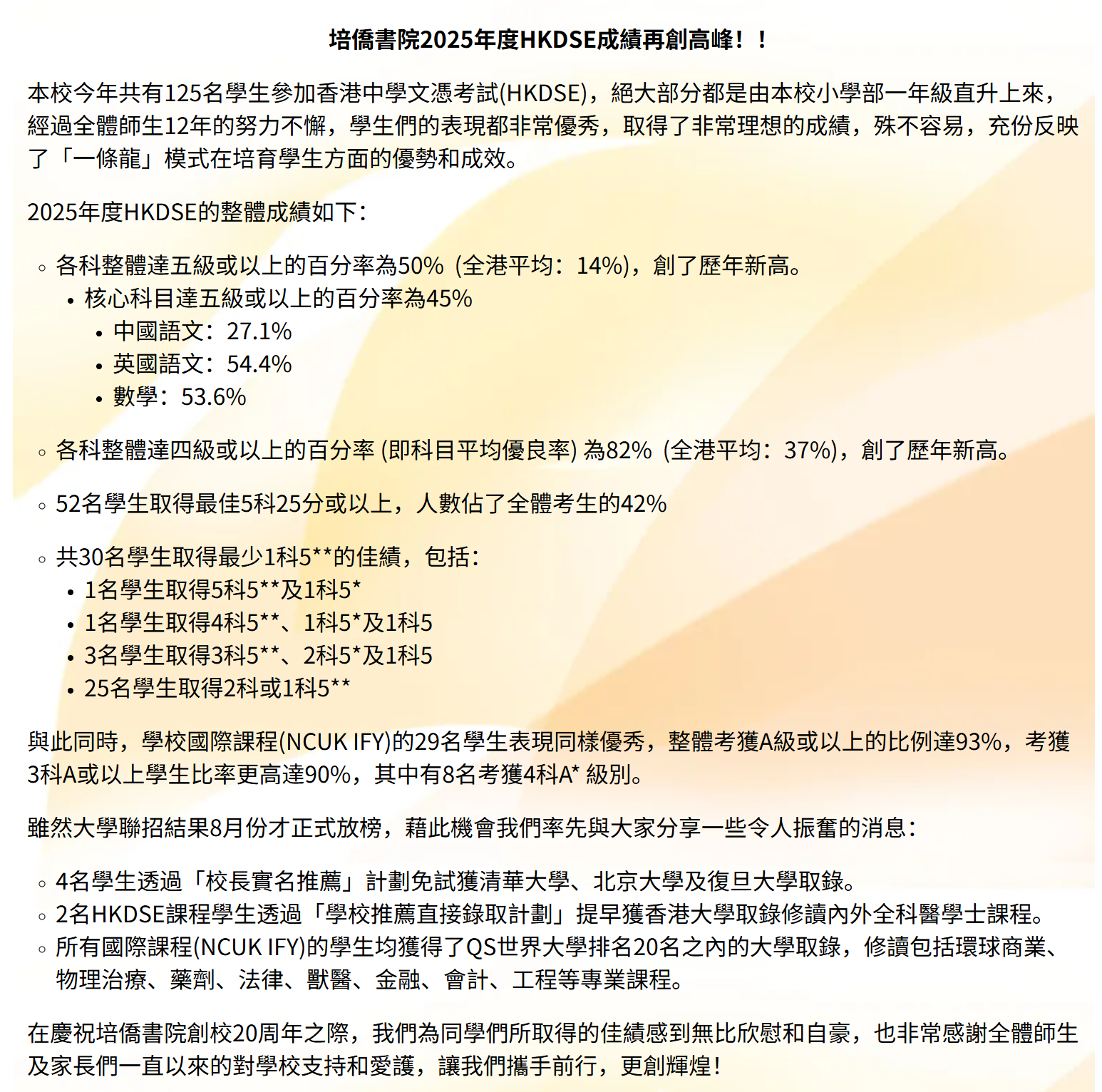 近年录取了较多内地来港学生,学习成绩逐年提高,由原来的Band2晋升到如今的Band1A中学,广受家长欢迎。