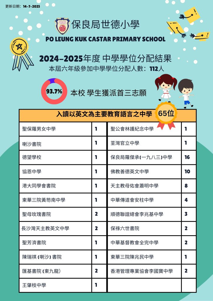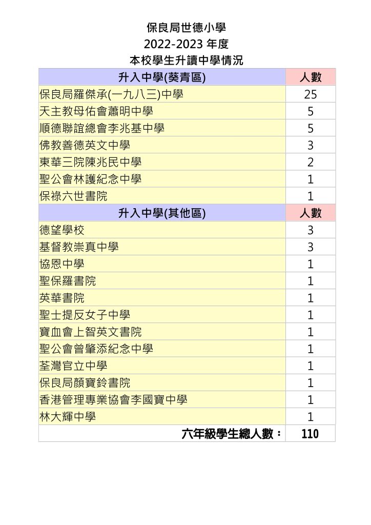 | 寶血會上智英文書院 | - | - | - | - | 1 | 0.9% | 1A | 40 | 女 | 深水埗 | 英文 |