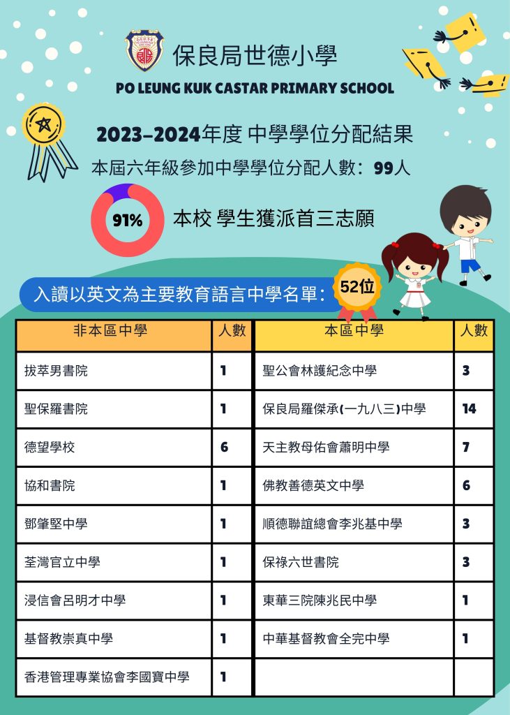 | 保良局顏寶鈴書院 | - | - | - | - | 1 | 0.9% | 1B | 74 | 男女 | 九龙城 | 英文 |