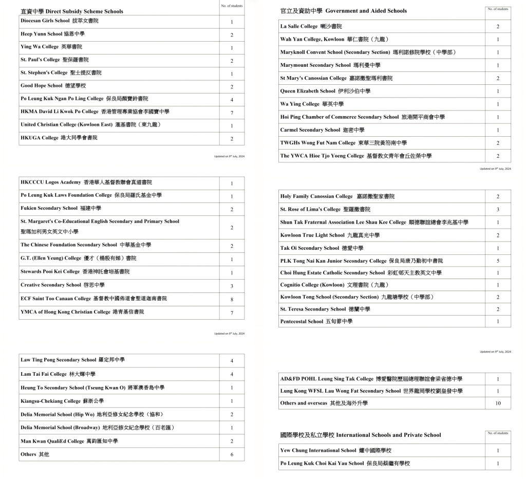 | 香港管理專業協會李國寶中學 | 9 | 6.9% | 7 | 5.7% | 5 | 4.5% | 1C | 112 | 男女 | 油尖旺 | 英文 |