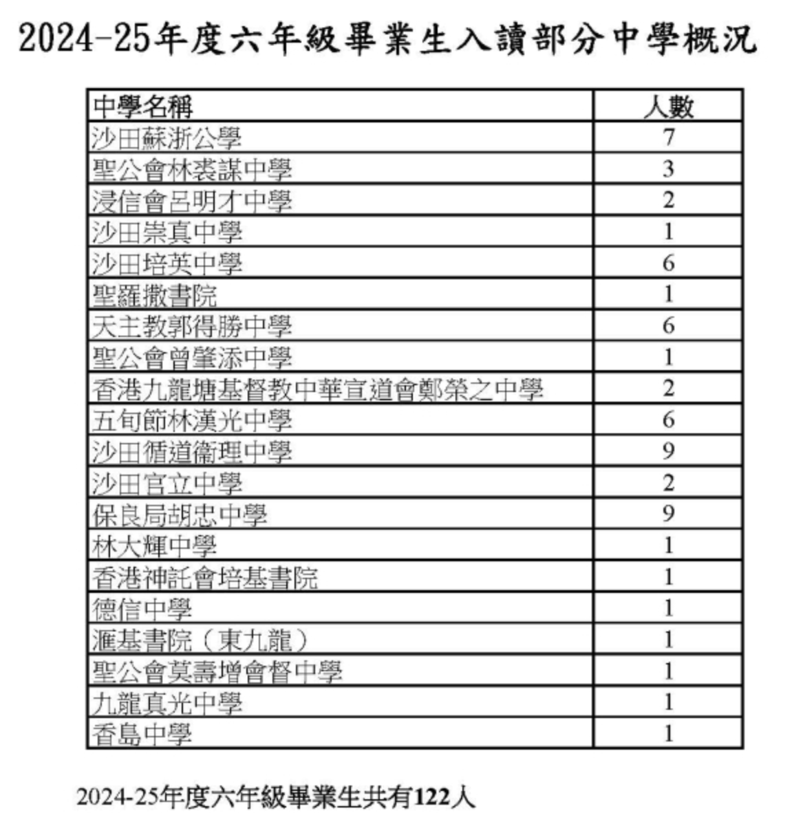 | 沙田蘇浙公學 KCCSHATIN | 7 | 5.7% | 11 | 9.4% | 7 | 5.8% | 1B | 36 |