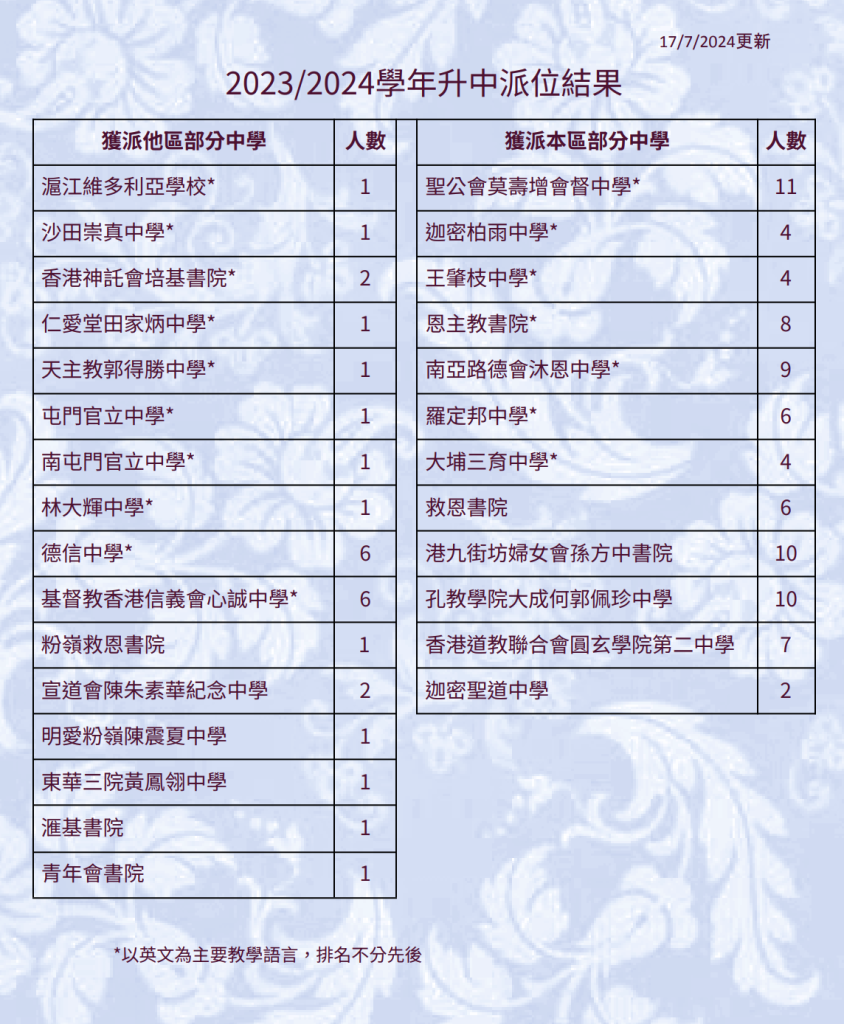 入学考试: 中英数试卷, 英文面试, 粤语面试