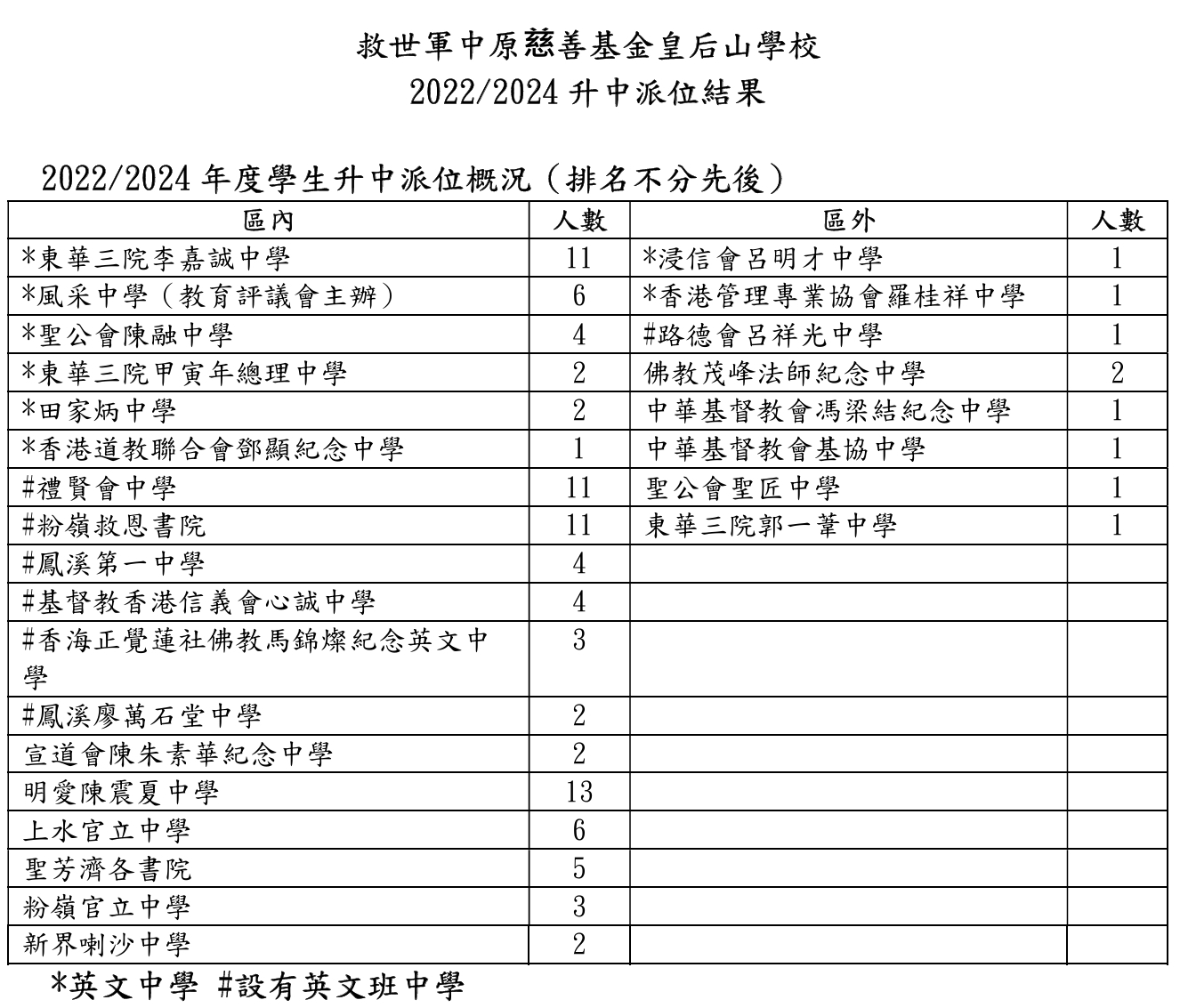| 聖公會陳融中學 SKHCYSS | 3 | 2.4% | 4 | 4% | - | - | 1C | 146 |