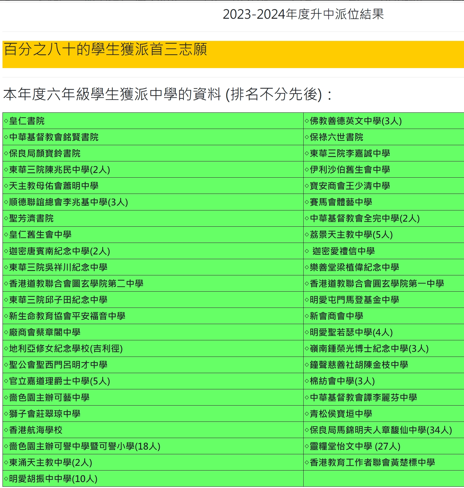 | 英華女學校 YWGS | 1 | 0.8% | - | - | - | - | 1A | 65 |