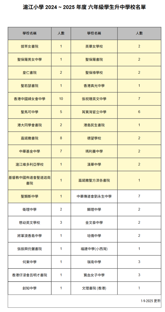 | 嘉諾撒聖方濟各書院 | 1 | 1% | - | - | 1 | 1.1% | 1C | 140 | 女 | 湾仔 | 英文 |