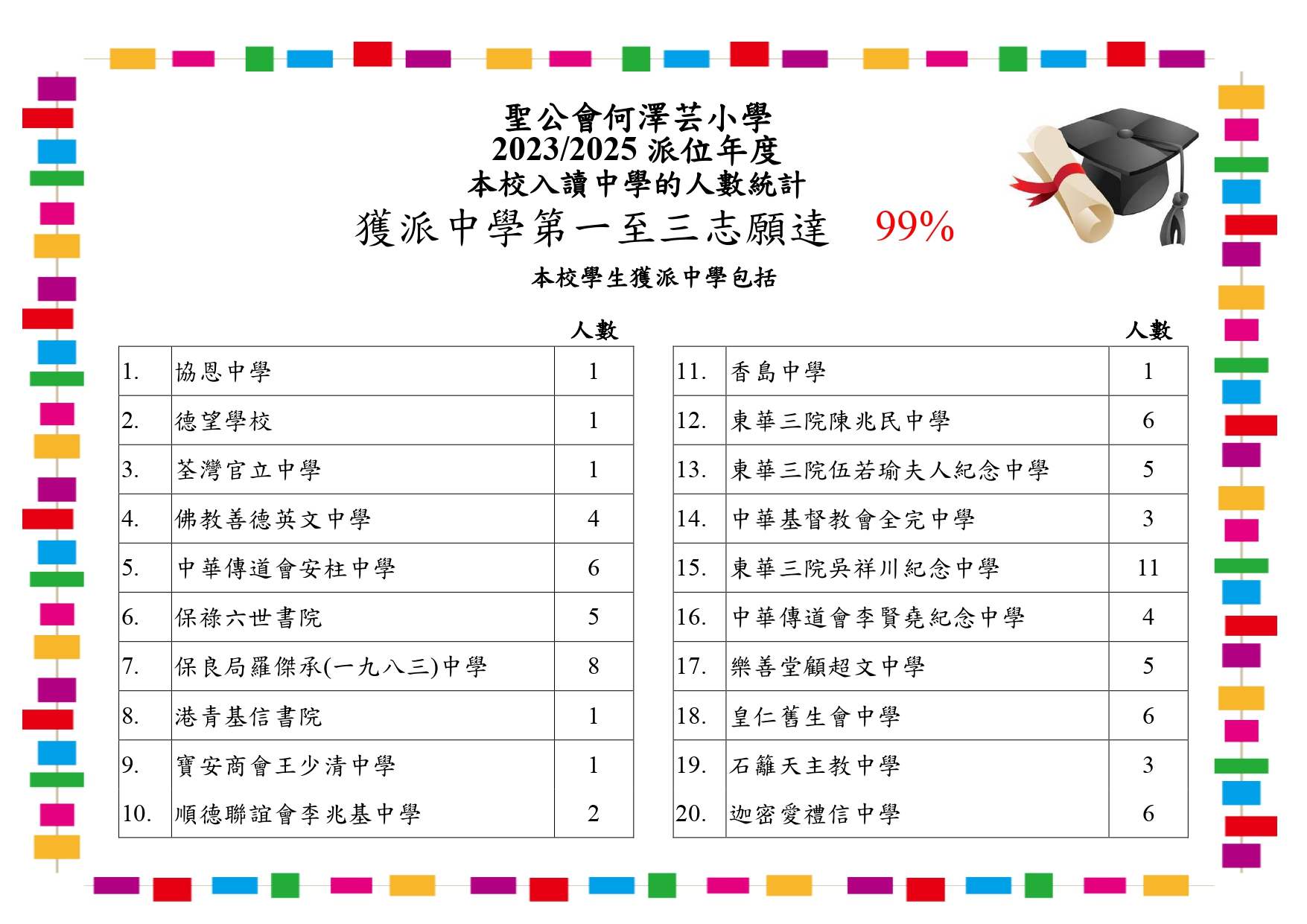 | 協恩中學 HYS | 1 | 0.9% | - | - | - | - | 1A | 4 |