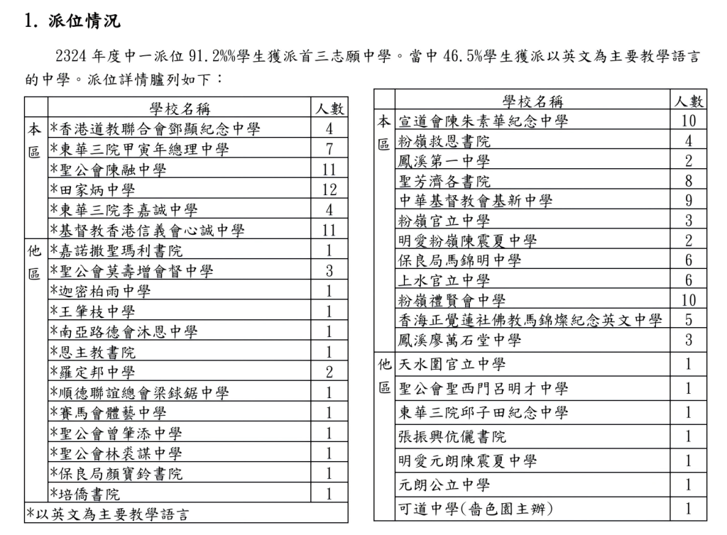 | 華仁書院(九龍) | 1 | 0.9% | - | - | - | - | 1B | 61 | 男 | 油尖旺 | 英文 |