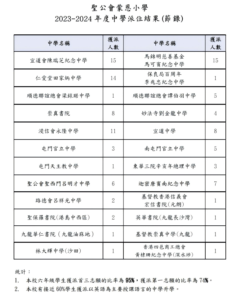 2024 升中派位结果