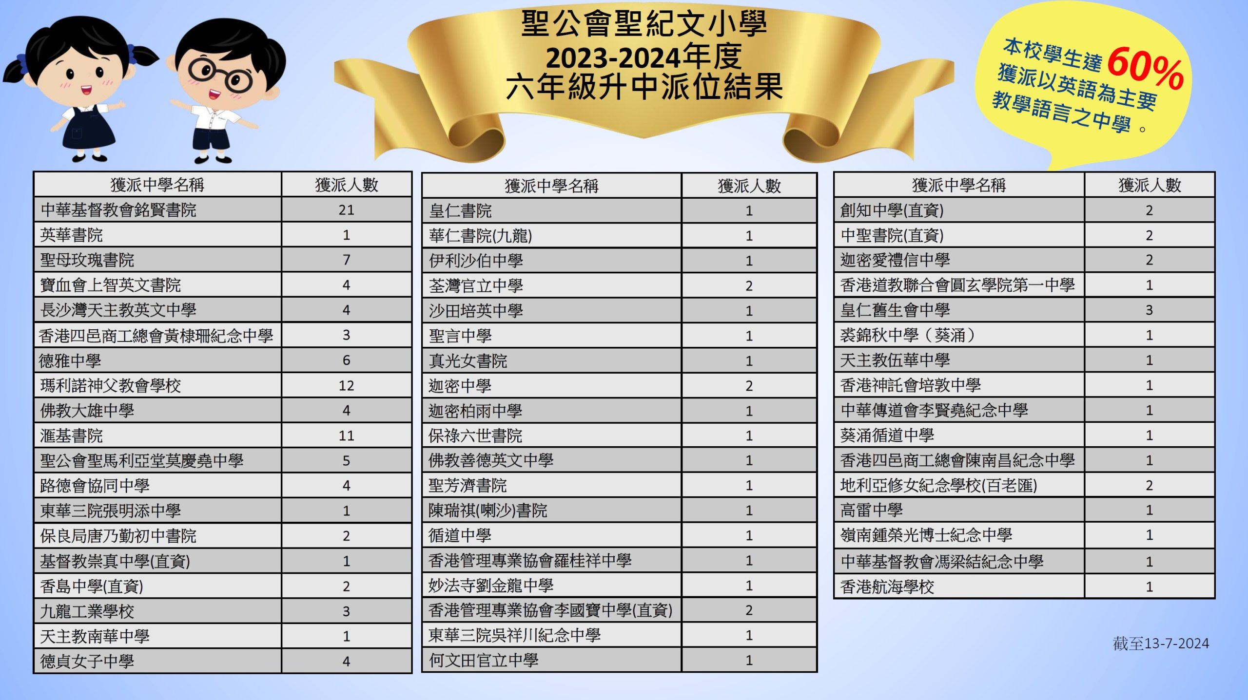 | 華英中學 WAYING | - | - | - | - | 1 | 0.7% | 1A | 23 |