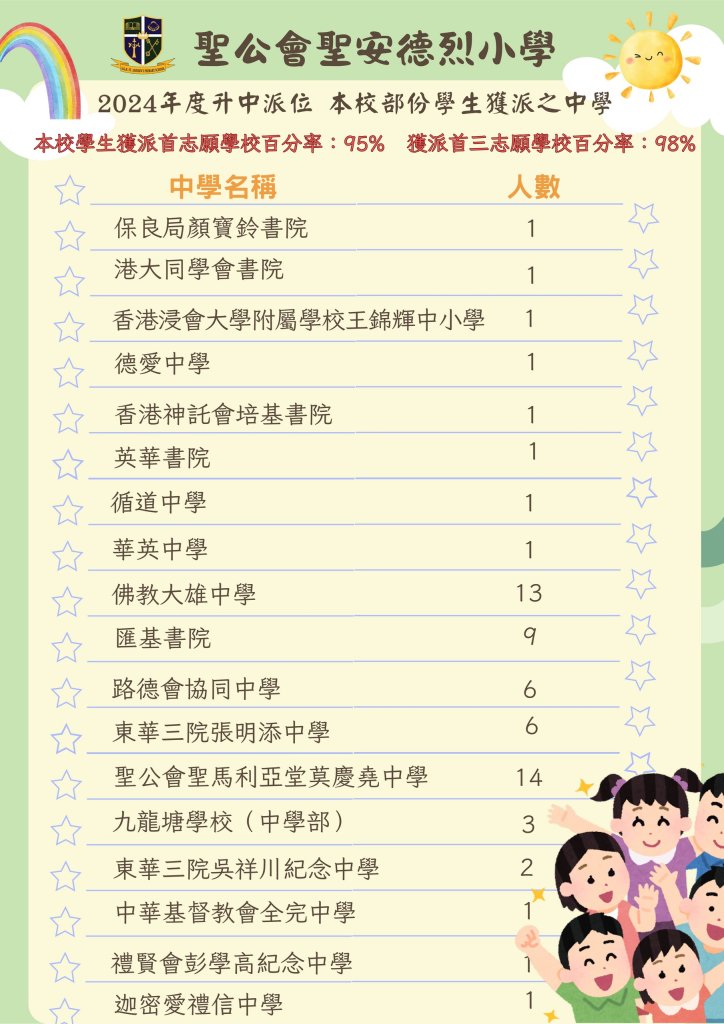 | 順利天主教中學 | - | - | - | - | 1 | 0.5% | 1C | 137 | 男女 | 观塘 | 英文 |