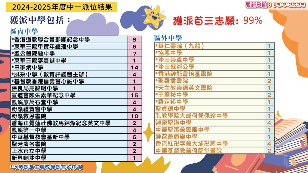 | 聖羅撒書院 | 2 | 2% | - | - | - | - | 1B | 97 | 女 | 沙田 | 英文 |