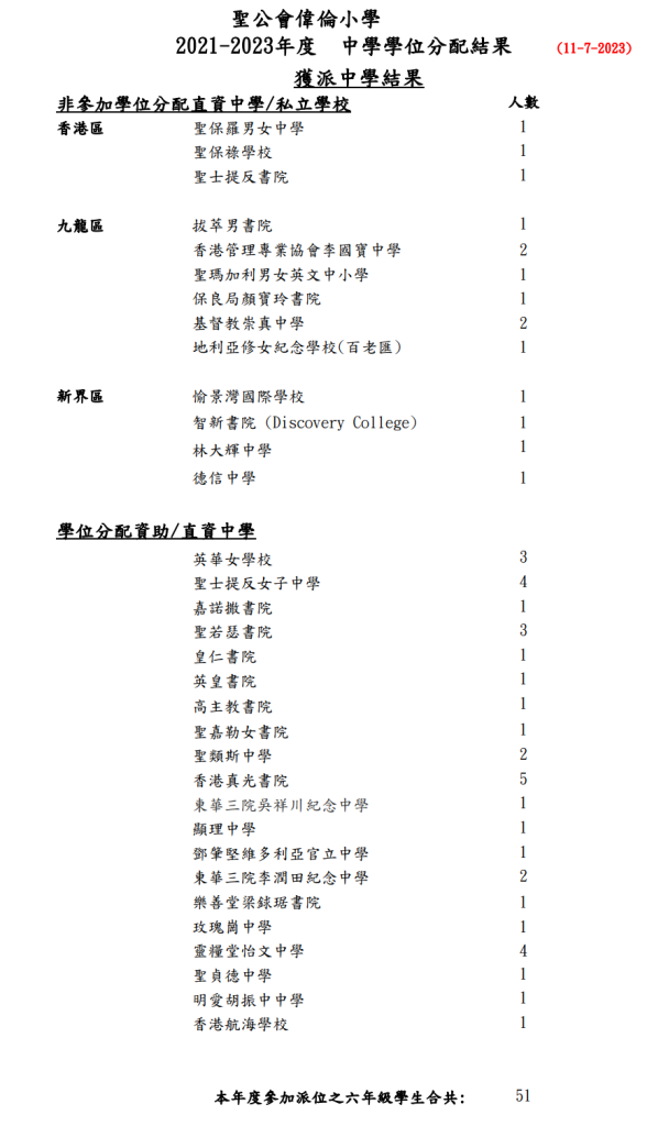 | 聖保祿學校 | - | - | - | - | 1 | 2% | 1A | 19 | 女 | 湾仔 | 英文 |