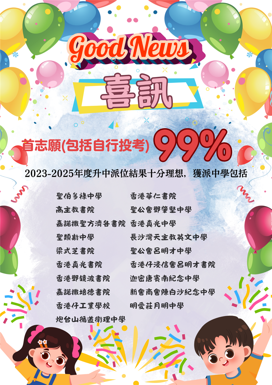 除個別學科定時推行進展性評估及總結性評估外,學生透過專題研習、匯報、課堂觀察、學生自評、互評及家長評估,建立個人的學習檔案。中英文科默書、英文科Show&Tell活動、數學科多元化評估及常識科科探活動,亦納入恒常學科評估內。