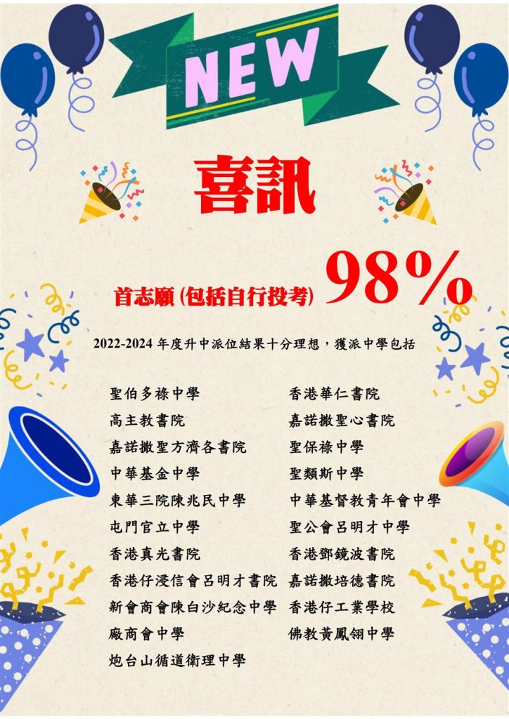 入学考试: 中英数试卷, 英文面试, 粤语面试