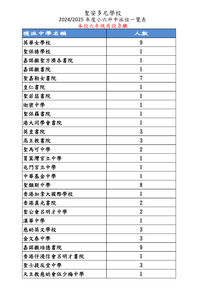 | 聖士提反堂中學 | 3 | 4.3% | - | - | 3 | 3.8% | 2A | 183 | 男女 | 中西区 | 中文 |