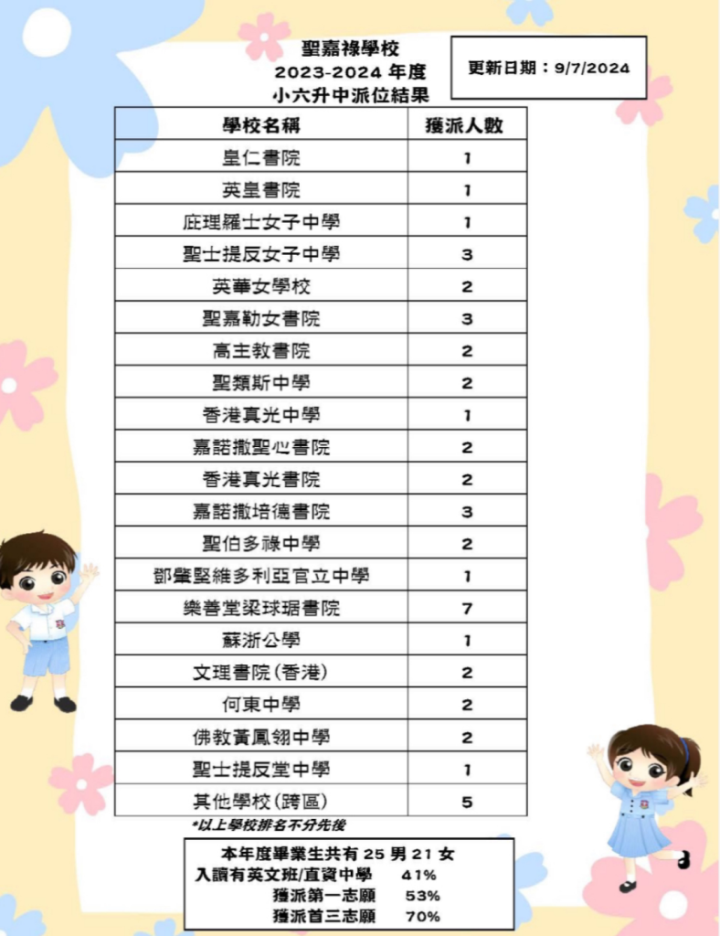 | 聖若瑟書院 | 1 | 2.2% | - | - | - | - | 1A | 24 | 男 | 中西区 | 英文 |