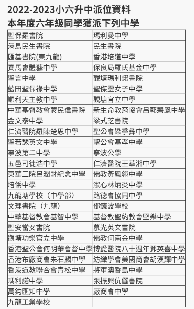2023 升中派位结果