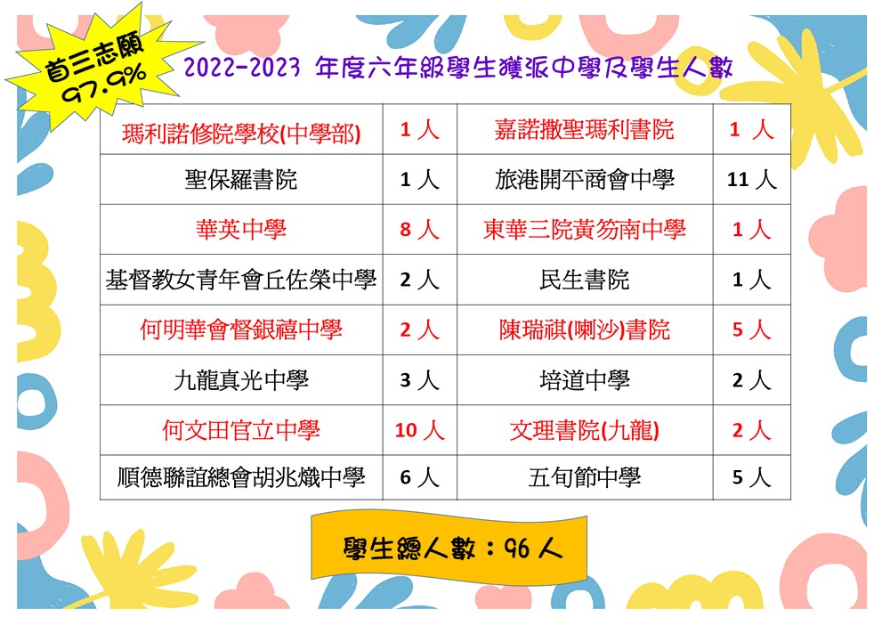 | 九龍真光中學 | - | - | 3 | 3.1% | 1B | 68 | 女 | 九龙城 | 英文 |