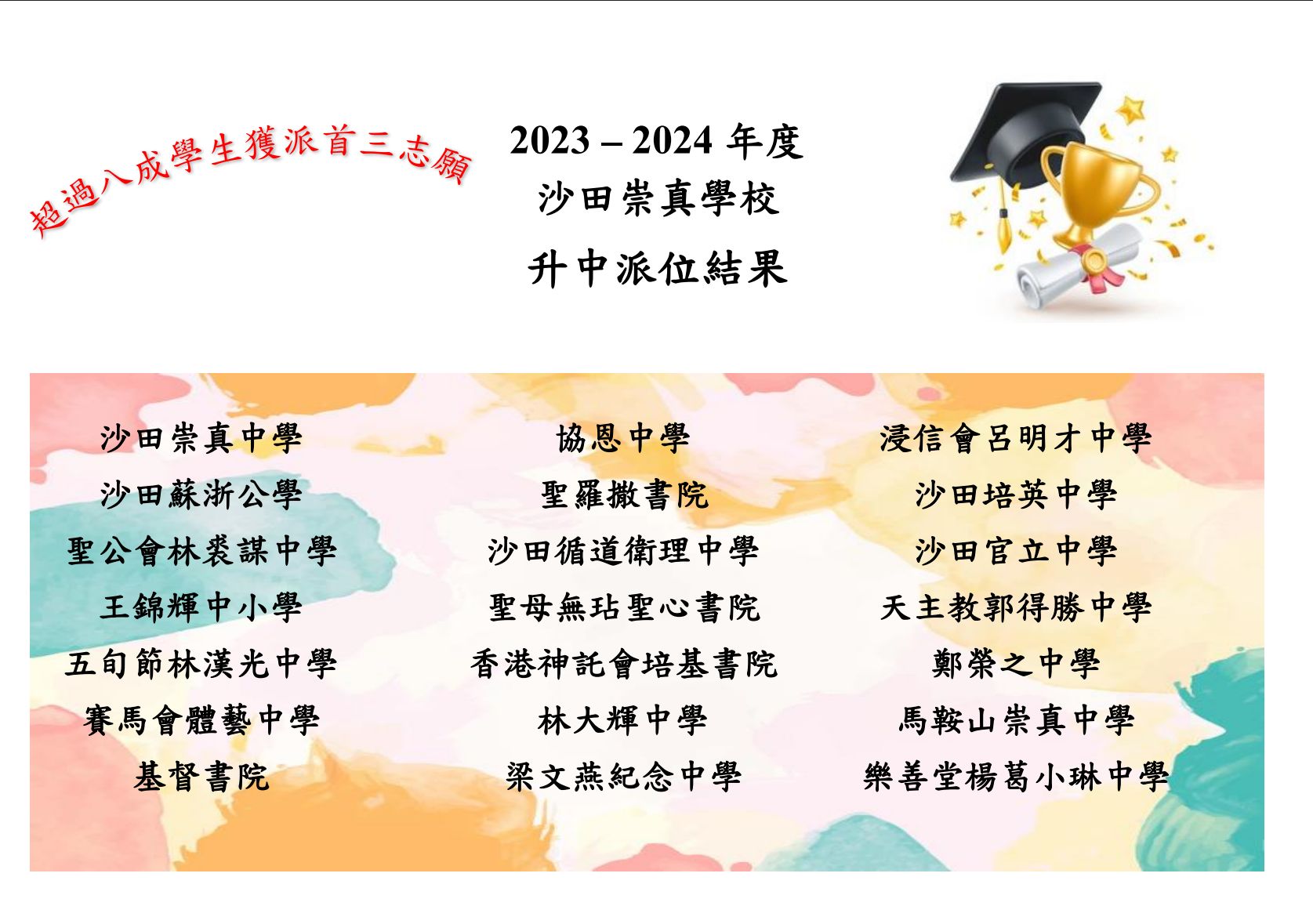 补充你在沙田崇真学校的录取经历