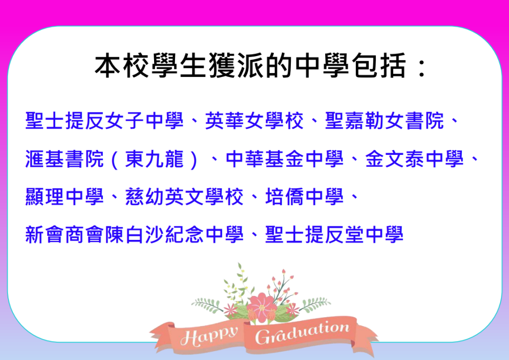 CPSS 新会商会陈白沙纪念中学 San Wui Commercial Soc. Chan Pak Sha School 关系:一条龙 语言:英文 性别:男女 班数:3 校网:南区 位置:南区黄竹坑 学费:- 关系说明