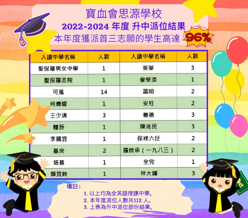 | 保祿六世書院 | 1 | 0.9% | 2 | 1.8% | 2 | 1.8% | 1B | 77 | 女 | 葵青 | 英文 |