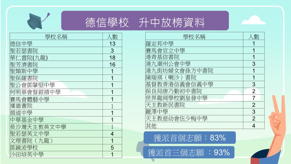 | 德信中學 | 13 | 12.9% | 13 | 12.5% | 10 | 9.6% | 2A | 164 | 男 | 沙田 | 英文 |
