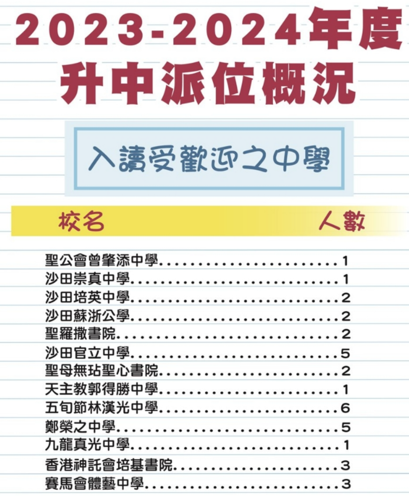 中学名称 2024年人数 2024年比例 2023年人数 2023年比例 Band DSE排名 性别 校网 语言
