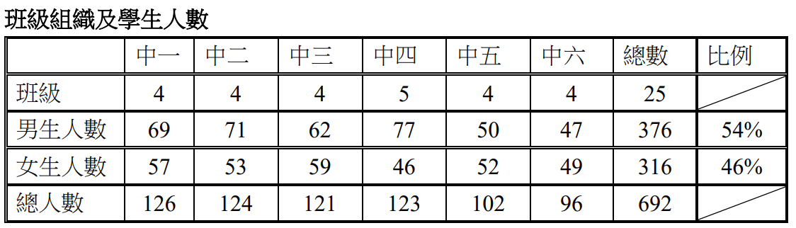 測考試卷內容之30%配合能力較弱學生之程度;50%之內容達至一般程度;20%則與能力較高同學之程度配合。數學科於高中課程加入延伸單元,讓能力較佳的同學選修。
