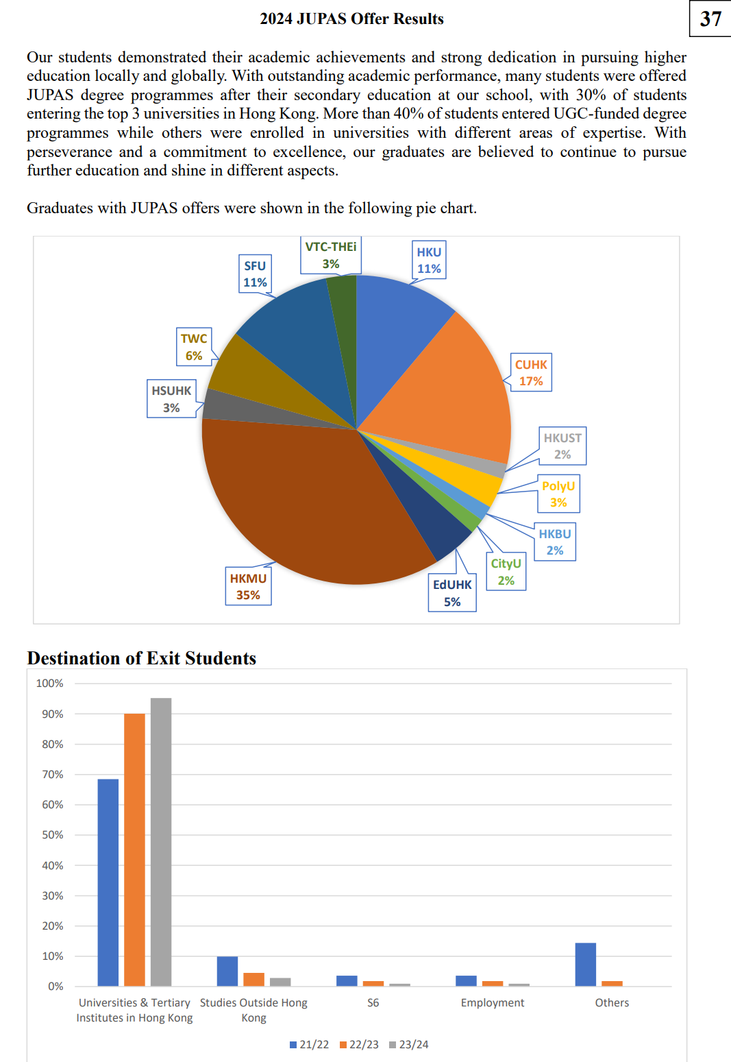 本校老師充滿教學熱誠,不但因材施教,而且對學生循循善誘。他們均能與時並進,不斷學習。本校所有老師都已完成基本資訊科技訓練。本校亦特別重視學生的全人教育,為他們提供均衡而多元的課程。除了學術傳授,其他方面,如生命教育、公民教育、德育培訓、傳媒教育、體育、美育等,本校亦同樣重視。