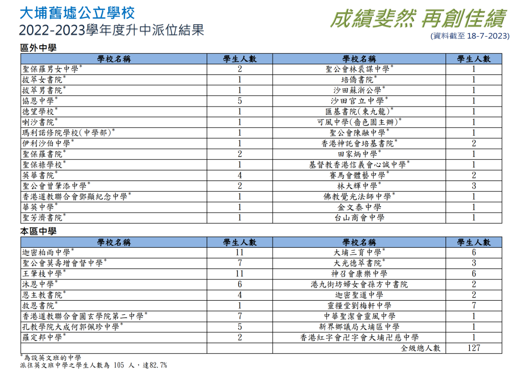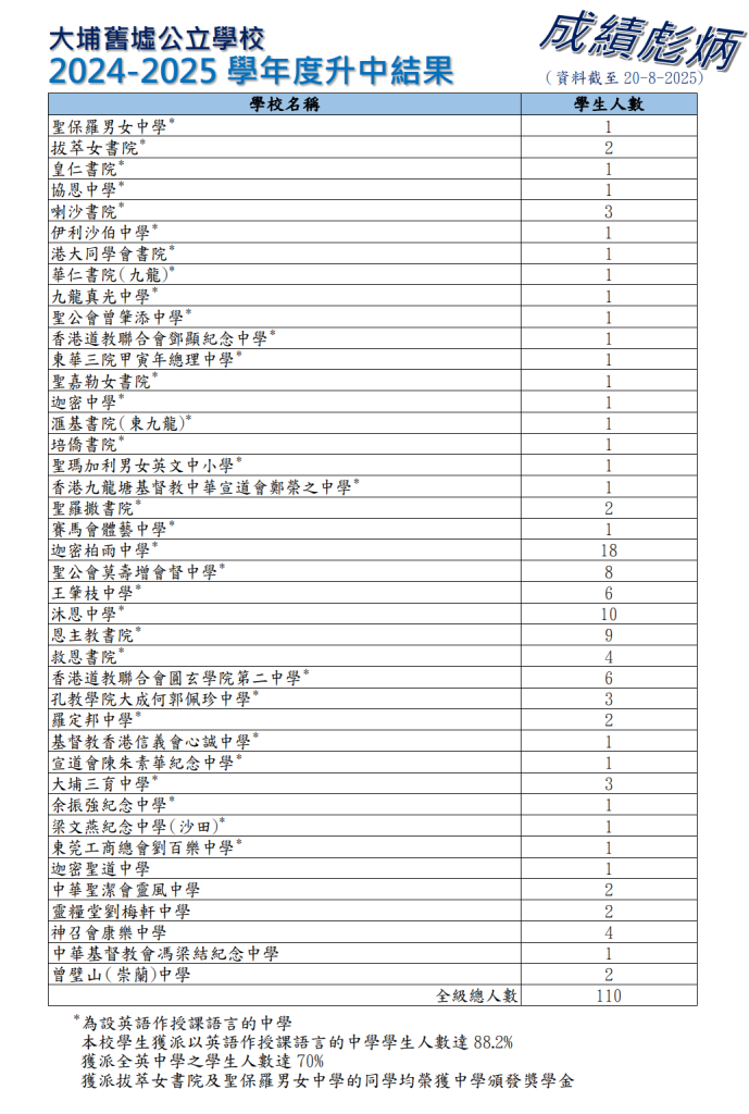 | 培僑書院 | 1 | 0.9% | - | - | 1 | 0.8% | 1A | 17 | 男女 | 沙田 | 英文 |