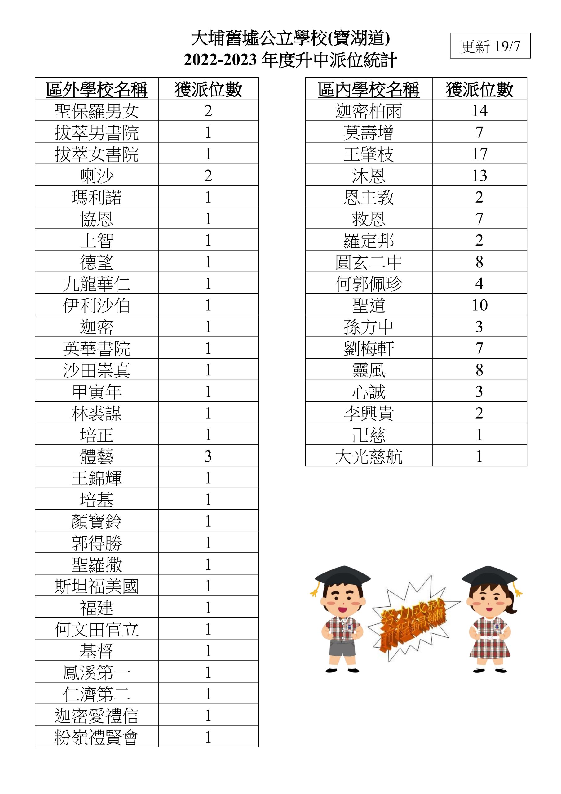 补充你在大埔旧墟公立学校(宝湖道)的录取经历