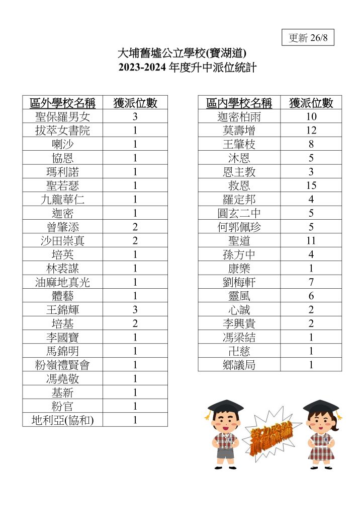 | 聖若瑟書院 | - | - | 1 | 0.8% | - | - | 1A | 24 | 男 | 中西区 | 英文 |