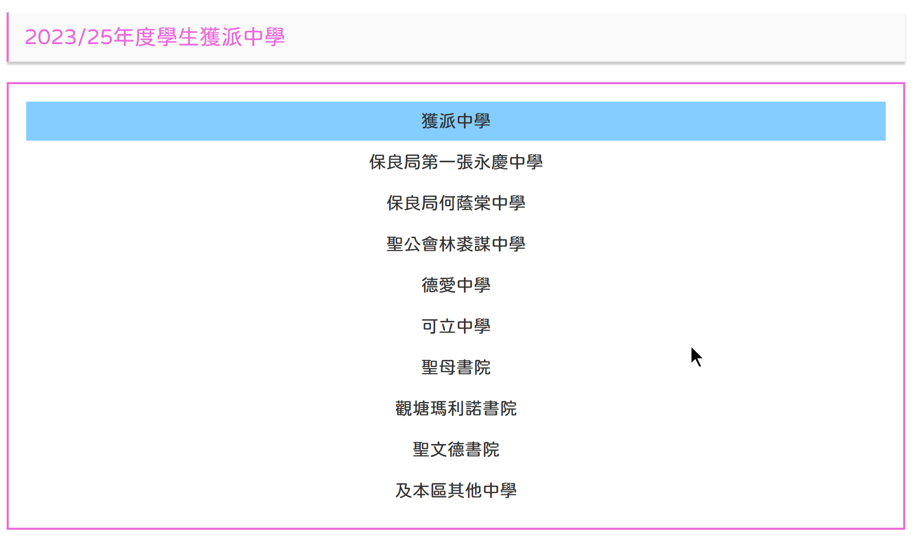 二年級設一班普教中班,四至六年級各設一班精英班,四、五年級各設一班電子學習班,四年級其中一班由外籍老師教授英語課。