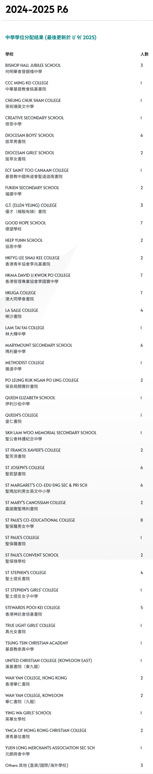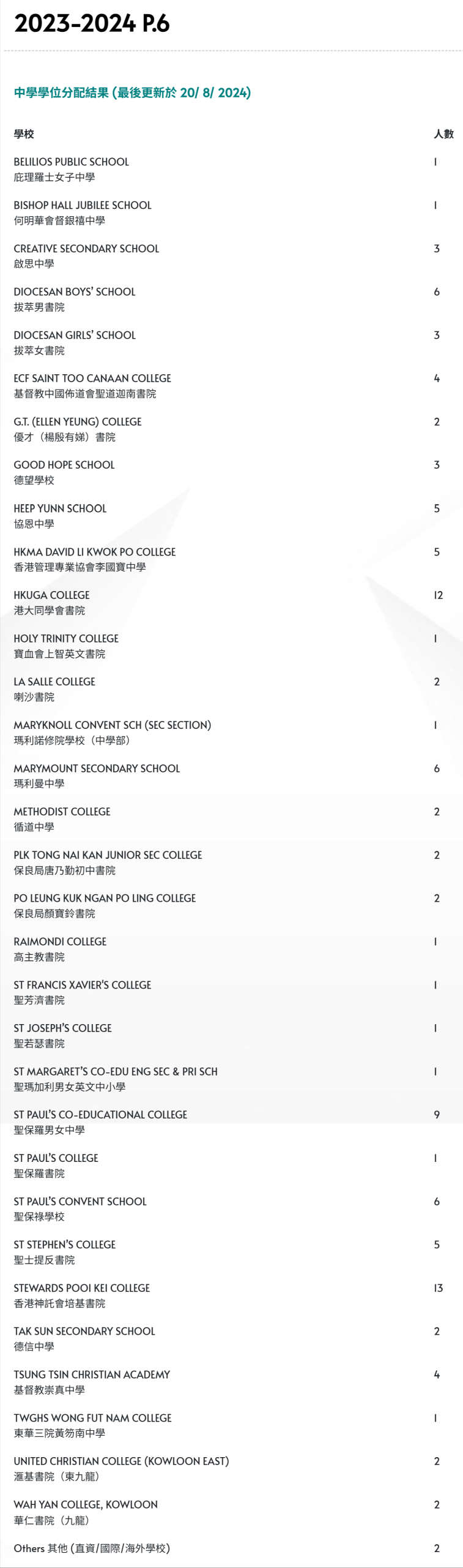 | 聖保羅男女中學 SPCC | 8 | 7.1% | 9 | 8% | 8 | 8.2% | 1A | 1 |
