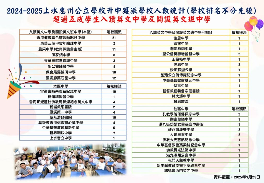| 王肇枝中學 | 1 | 0.7% | - | - | - | - | 1B | 82 | 男女 | 大埔 | 英文 |