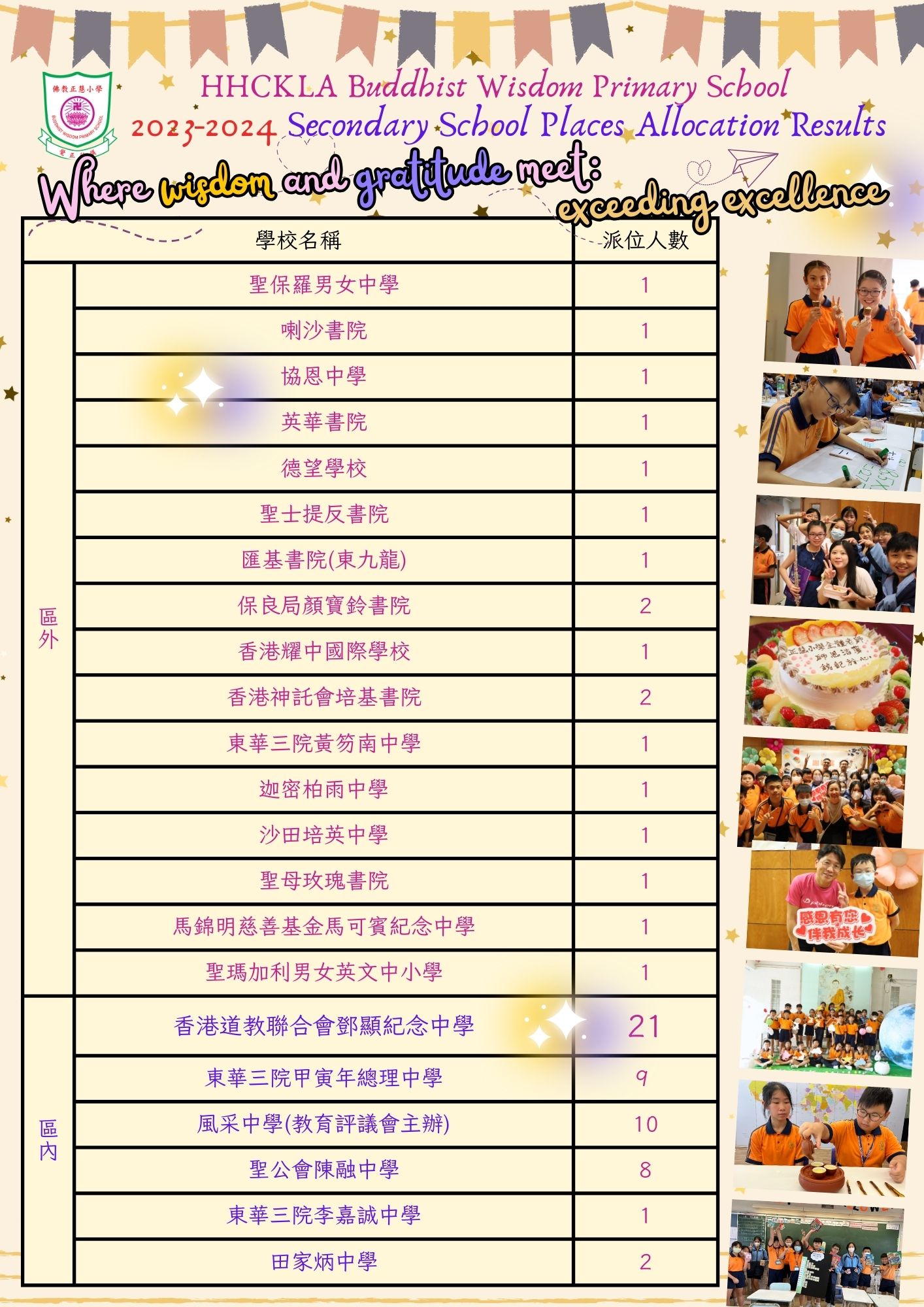 | 風采中學(教育評議會主辦) ELEGANTIA | 16 | 10.3% | 18 | 11.5% | 8 | 5.1% | 1A | 43 |