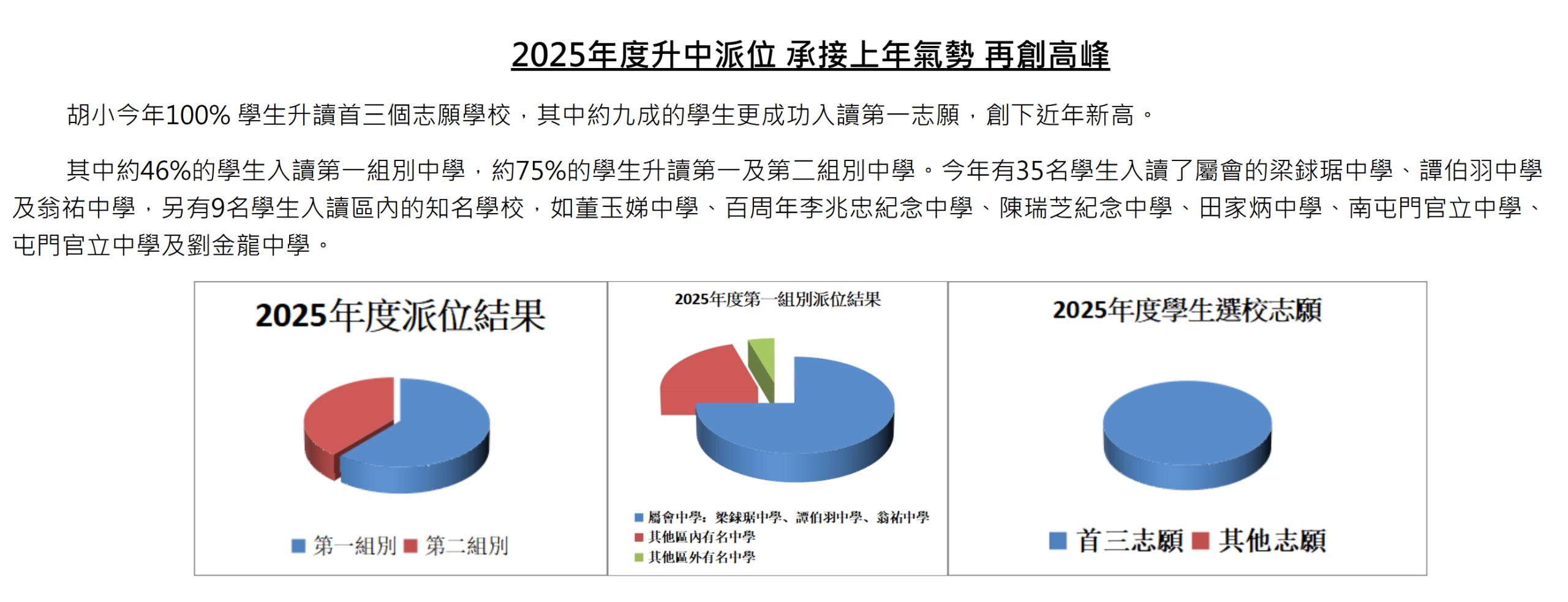 一年級全學年以多元化的進展性評估代替測驗及考試。