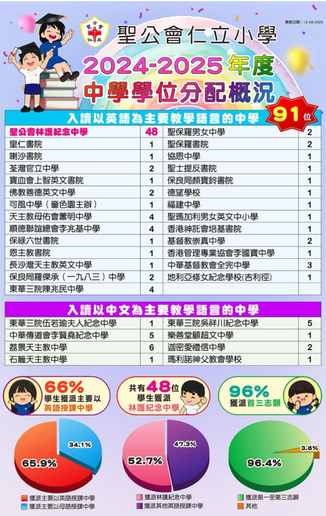 | 聖保祿學校 | - | - | 1 | 0.7% | - | - | 1A | 19 | 女 | 湾仔 | 英文 |
