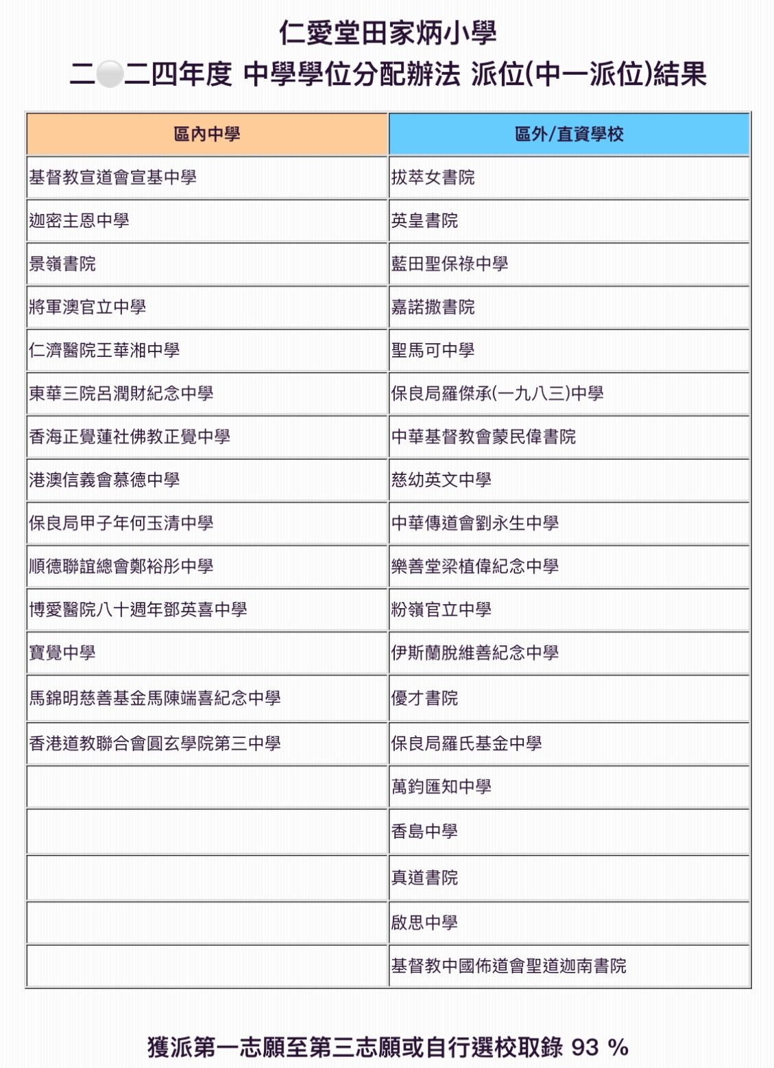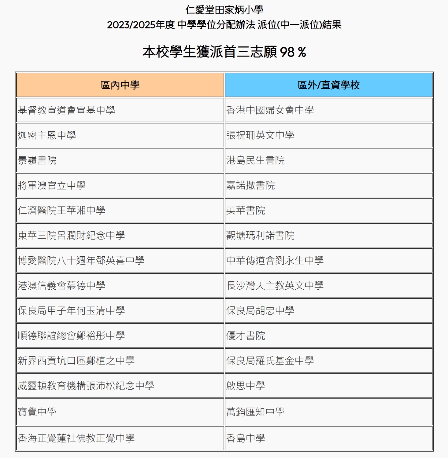 一至六年級,每級五班內設有一班普教中;另按需要而定。
